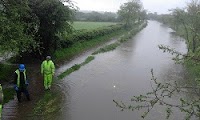 More water than usual in canal at Templar's Firs. Railway track just higher up had flooded and the line was closed by Network Rail in the pm. Possible cause, according to Network Rail: flow of run off from nearby new housing. That's what we said would happen:its time LA's listened to us about drainage! Good thing there is a canal to take the water.